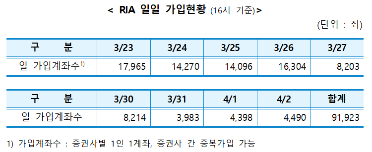 ´©ÀûÀܰí 4826¾ï¿øÀº RIA °èÁ ¾È¿¡ ÆíÀÔµÈ ÇØ¿ÜÁÖ½Ä, ±¹³» ÅõÀÚÀÚ»ê, ¿¹Å¹±ÝÀ» ¸ðµÎ Æ÷ÇÔÇÑ ±Ý¾×ÀÌ´Ù. ´Ù¸¸ °¡ÀÔ°èÁ ¼ö´Â Áõ±Ç»çº° 1ÀÎ 1°èÁ ±âÁØÀ¸·Î Áý°èµÇ¸ç, Áõ±Ç»ç °£ Áߺ¹ °¡ÀÔÀº °¡´ÉÇØ ½ÇÁ¦ °¡ÀÔÀÚ ¼ö¿Í´Â Â÷À̰¡ ÀÖÀ» ¼ö ÀÖ´Ù.